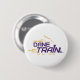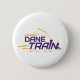 The UAlbany Dane Train logo features bold, angular typography with the words "Dane Train" in large, purple capital letters. Above it, "UAlbany" is written in a smaller, golden font. The design incorporates the silhouette of a train, with smoke billowing from the smokestack. The train's wheels are represented in gold, giving the appearance of movement, and golden streaks on the left emphasize speed and momentum. The logo exudes a dynamic and energetic vibe, combining elements of strength and motion, reflecting a sports or team spirit.