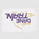 The UAlbany Dane Train logo features bold, angular typography with the words "Dane Train" in large, purple capital letters. Above it, "UAlbany" is written in a smaller, golden font. The design incorporates the silhouette of a train, with smoke billowing from the smokestack. The train's wheels are represented in gold, giving the appearance of movement, and golden streaks on the left emphasize speed and momentum. The logo exudes a dynamic and energetic vibe, combining elements of strength and motion, reflecting a sports or team spirit.