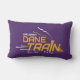 The UAlbany Dane Train logo features bold, angular typography with the words "Dane Train" in large, purple capital letters. Above it, "UAlbany" is written in a smaller, golden font. The design incorporates the silhouette of a train, with smoke billowing from the smokestack. The train's wheels are represented in gold, giving the appearance of movement, and golden streaks on the left emphasize speed and momentum. The logo exudes a dynamic and energetic vibe, combining elements of strength and motion, reflecting a sports or team spirit.