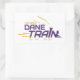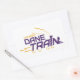 The UAlbany Dane Train logo features bold, angular typography with the words "Dane Train" in large, purple capital letters. Above it, "UAlbany" is written in a smaller, golden font. The design incorporates the silhouette of a train, with smoke billowing from the smokestack. The train's wheels are represented in gold, giving the appearance of movement, and golden streaks on the left emphasize speed and momentum. The logo exudes a dynamic and energetic vibe, combining elements of strength and motion, reflecting a sports or team spirit.