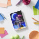 I was super excited when I got my cover in. It is attached by a magnet across the edge. I don’t think it will be very protective but it is very cute. I’m going to keep my iPad in a sleeve and use this face cover while I have it out. It folds to create a tilt for better viewing and to keep the iPad at a slight angle for typing. The colors are bright and it is fun. I’ve really enjoyed it. The personalization looks like amazing. It is the same color as the picture and is the same brightness. Well done! Very nice.