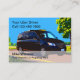Ride hailing Uber driver business cards in a large format with graphic of an uber vehicle on the road and simple 4 line custom template you can personalize online. Works for a taxi driver, ride sharing service, or airport transport.