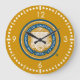 Great price for a very nice product. Arrived a day early - unheard of these days. The outside gold area has a little more orange tone to it than shown in the picture. Great packing so product can't get damaged. I used the same packing to forward the clock to my brother and sister-on-law for the 50th wedding anniversary. Printing was just as expected - lovely!