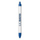 Very nice blue, or black ink pen. I will be buying more. The print was fine. I can easily see the print. The flowers look great.