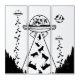 A funny black and white illustration of an unidentified flying object, UFO abducting cows from a field. The twist here is that the pilots of the spaceships are also cows. A funny farm themed design.