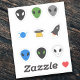 A collection of Stickers with alien in green, blue, gray, black, outline, a rocket and a blue planet for extraterrestrial lovers and those who believe in abduction!