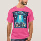 My 11 yo wore adult XL (5’7” 165#). The 8yo is small framed. She wore adult small and tied it in the back. Grandma wore adult large with long sleeve shirt underneath. Tall girl adult medium. Dark haired male adult large. Good quality dark Heather gray, Gildan brand shirt. -it was next up from basic choice and cost about $20 per shirt. Not too thick or thin. Washed and dried well, no major shrinkage. Not see-through. Can wear a bra under it fine. Screen print is just as shown and well done, front and back.