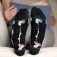 This fun Halloween socks are bright and colorful. The small print is crisp and shows the fun details. The softness of the socks feels nice on my feet and ankles. .