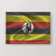 Button with the flag of Uganda in wavy fabric style design. This design features the Ugandan flag colors and design with a beautiful waving material textured effect. This flag design is a great way to show you are proud to be from Uganda.