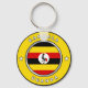 The national flag of Uganda infused into a circle shape which has the added country and capital city`s names printed around it.