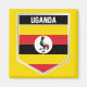 The national flag of Uganda is infused into a shield shape along with the country name.