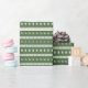 Ugly Christmas Chic Green Wrapping Paper: This knit Wrapping Paper features a festive, yet understated, Christmas pattern. With a blend of fir trees, snowflakes, bells, and reindeer arranged in horizontal rows, the design offers a playful twist on the traditional “ugly Christmas sweater” esthetic. The camouflaged knit pattern adds a touch of sophistication, making it a unique and eye-catching accessory for the holiday season.