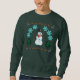 Snowflakes falling on the Christmas sweater. The funny ugly sweater for christmas parties this holiday includes snowman, frosty, reindeer, santa, claus