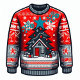 A fun design featuring three ugly Christmas sweaters, perfect prize for your ugly Christmas sweater party!