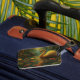 Of of the two luggage tags have some scratch on it.