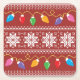 Ugly Sweater Snowflakes Christmas Lights Red Square Paper Coaster