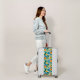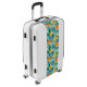 This UGO Luggage piece is shown in the white color shell with a tropical palms print and has black color accents.
