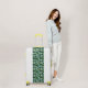 UGO Luggage piece is shown here in the color white with yellow accents and a lovely tropical palm print.