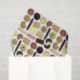 Design features an assortment of delicious British biscuits including ginger nuts, rich tea, custard creams, chocolate bourbon, digestives, jaffa cakes, pink wafers, viennese whirls, nice biscuits, malted milk, chocolate chips, shortbreads, and more. Perfect for tea time!