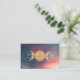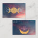 Golden Triple Moon sunset business card, perfect for those who want to add some Goddess or Moon energy to their professional profile. A golden triple moon with rays of enery and small stars are set against vibrant sunset sky.