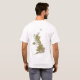 The front of this t-shirt bears a small British flag with its familiar white fimbriated regular and diagonal red crosses on a blue background, while the back displays a relief map of UK. Available on t-shirts, sweatshirts, polos, long-sleeves and more.
