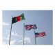 The Union Flag of the United Kingdom between the Afghanistan and United States flags featured with wind.