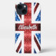 Personalize faux sparkly girly iPhone case with your name. Sparkly UK United Kingdom flag in red and blue faux sparkles glitters. We use photo of sparkles and not actual glitters.