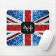 UK flag red blue white sparkles glitters Monogram Mouse Pad