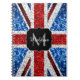 UK flag red blue white sparkles glitters Monogram Notebook