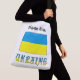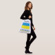 Large crossbody bag, just the thing for traveling, features the blue and yellow Ukrainian Flag with the word UKRAINE below in the colors of the flag. A space to add your name gives you the ability to add a personalized touch. If you prefer to create a customized gift, add someone else's name.