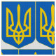 Patriotic Ukrainian coat of arms. Coat of Arms of Ukraine. Lesser Coat of Arms of Ukraine, the so called Tryzub. A stylised trident symbol in gold on a background shield of blue.