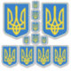 Patriotic Ukrainian coat of arms. Coat of Arms of Ukraine. Lesser Coat of Arms of Ukraine, the so called Tryzub. A stylised trident symbol in gold on a background shield of blue.