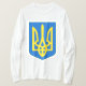 Patriotic Ukrainian coat of arms. Coat of Arms of Ukraine. Lesser Coat of Arms of Ukraine, the so called Tryzub. A stylised trident symbol in gold on a background shield of blue.