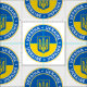Ukraine design with flag of Ukraine colors and coat of arms.