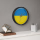 The size of the clock is dramatic and the abstract alcohol ink design is soothing and intricate at the same time. I chose the black frame that adds pop to the blue and gold design. The gold printing would be better in a slightly darker or larger font. I love it and I’m looking for just the right place in ny new apartment. I would recommend this clock for a personal gift or a present. I feel that the quality is excellent for the money! I’m a bit of a clock nut so I’m pretty particular about my purchases. The clock is larger in diameter than many if the clocks I have, so it stands out very well. I think a slightly darker printing color and a moderately larger size would best suit a professional decor or add more impact in a work place item.