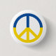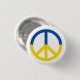Ukraine flag peace symbol white pin button.