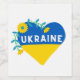 Colorful bottle label design supporting the people of Ukraine features heart shaped Ukrainian flag in blue and yellow with a vine of flowers and center Ukraine text. Gray background