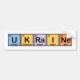 Here we have the word Ukraine made up from the following elements of the periodic table: Uranium, Potassium, Radium, Iodine and Neon.