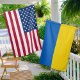 Ukraine & American Flag house flag. One side the Ukrainian flag in blue and yellow other side the American Flag in red white and blue to show support for Ukranian peace and freedom. COPYRIGHT © 2021 Judy Burrows, Black Dog Art - All Rights Reserved. Ukraine & USA American Flag House Flag