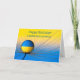Ukrainian Birthday card in blue and yellow, bilingual with English and Ukrainian.