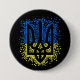 Ukrainian emblem trident tryzub scattering hearts button