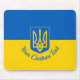 Mousepad pad with the flag of Ukraine, a blue and yellow flag with the Ukrainian coat of arms (emblem) with a trident in the center, and a custom text template for your message