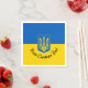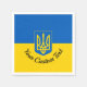 Paper Napkins with the flag of Ukraine, a blue and yellow flag with the Ukrainian coat of arms (emblem) with a trident in the center, and a custom text template for your message