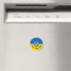 Magnet with the flag of Ukraine, a blue and yellow flag with the Ukrainian coat of arms (emblem) with a trident in the center, and a custom text template for your message