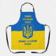 All-over print apron with the flag of the Ukraine with the Ukrainian coat of arms in the center and two customizable text templates for your message