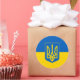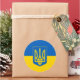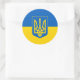 Round sticker with the flag of Ukraine, a blue and yellow flag with the Ukrainian coat of arms (emblem) with a trident in the center