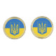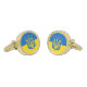 Round cufflinks with the flag of Ukraine, a blue and yellow flag with the Ukrainian coat of arms (emblem) with a trident in the center