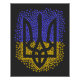 Ukrainian national emblem trident tryzub contour made of many scattering blue and yellow stars