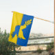 This striking flag design showcases a Ukrainian-inspired peace dove, split between vibrant yellow and blue halves, with an olive branch symbolizing hope. Perfect for adding a touch of national pride and harmony to your outdoor decor or personalized items on a custom design platform, this meaningful artwork is ideal for art enthusiasts and supporters.
