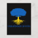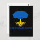 Show your pride in your Ukrainian heritage with this postcard featuring rooted tree silhouette in blue and yellow colors of Ukraine flag with customizable "Ukrainian Roots" text on black background.